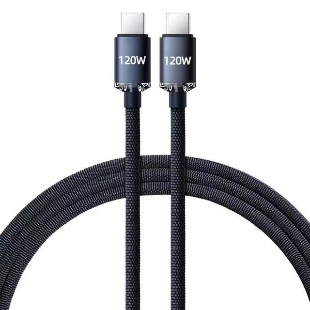 Кабель швидкого заряджання з передачею даних PD Type-C до Type-C 120W 6A Super Charing 2 метри в обплітанні Сірий